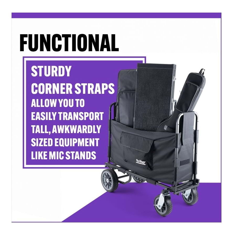 Ideal for transporting bulky, irregularly shaped, or delicate gear that doesn’t stack well - everything from drum racks to audio cases and lighting, all kept secure, increase the loading capacity of the UTC2200 or UTC5500 Utility Cart with the UCB2500 Cart Bag. The reinforced bottom provides a solid surface for placing amps and other gear while the sides enclose and stabilise non-stackable items such as drum hardware, enabling more equipment to be loaded at once. The combination of a robust bottom panel and secure attachment ensures gear doesn’t shift - even on busy event floors or during transport. Corner straps save space by securely holding speaker, lighting, and mic stands in the upright position while exterior accessory pockets carry anything from cables to microphones or other small accessories. For safe transportation, hook-and-loop straps ensure the bag is safely attached to the cart frame. Built from tough nylon and reinforced throughout, this bag is made to withstand the rigors of convention centers, stages, and loading dock environments.