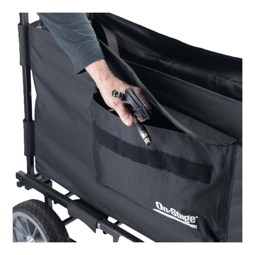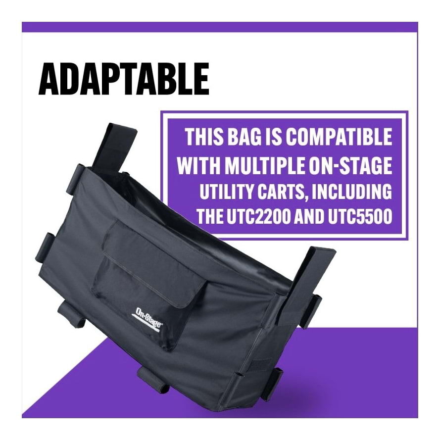 The UCB2500 is a robust, tailored bag crafted to fit snugly onto your On-Stage UTC2200 or UTC5500 utility carts, providing enhanced load capacity and stability for various gear and equipment. Reinforced bottom, enclosed sides, accessory pockets, straps.