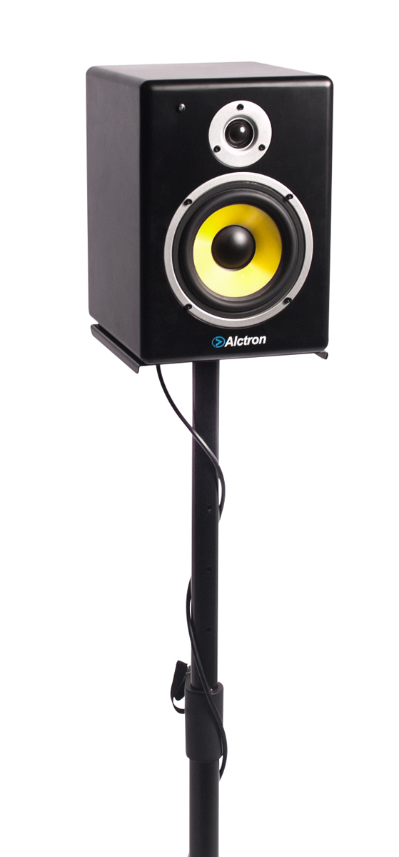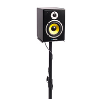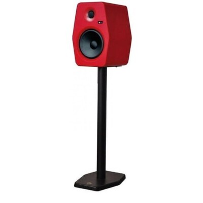 Features a heavy duty all metal construction, with a solid triangular base and metal speaker shelf. The vertical pole is adjustable from anywhere between 83cm and 116cm. Making this a great option as a stand for 5" and 6" monitor speakers.