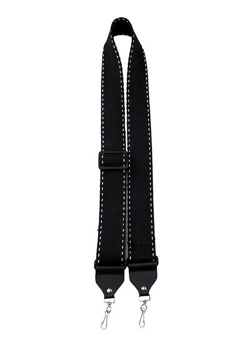 Sleek and durable, this Perris 2" Deluxe Black Cotton Banjo Strap features bold white contrast stitching, secure metal hooks, and adjustable length (39″–58″). Designed for comfort and reliability, it's a stylish choice for serious banjo players.