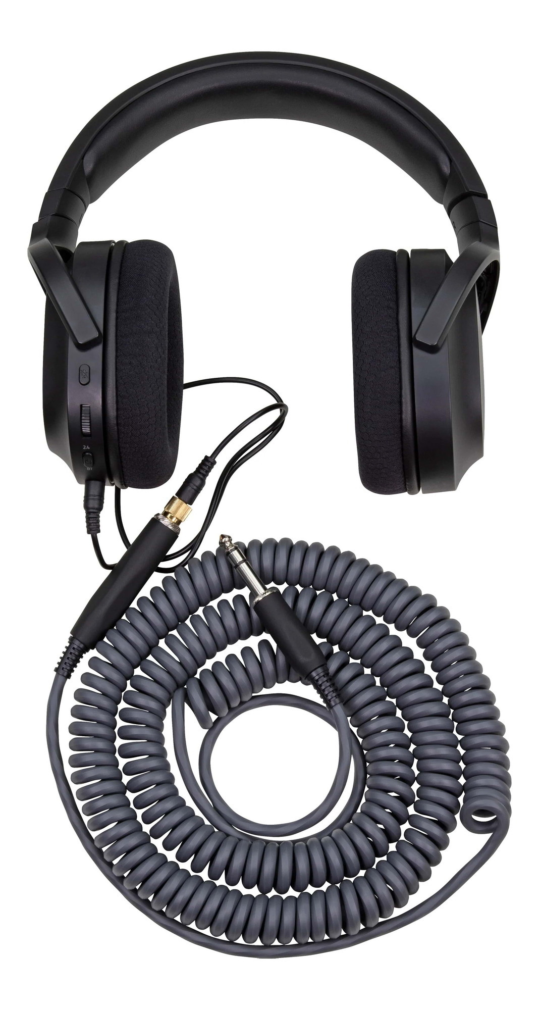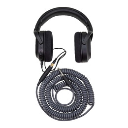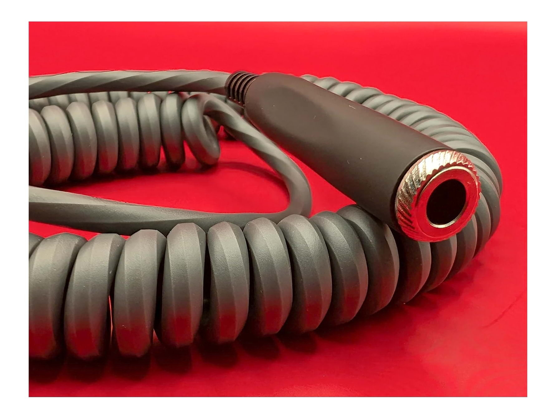 Charcoal Grey - The Pig Hog Hex Series Coiled Headphone Extension Cable at a 25ft length feature heavy duty molded 1/4' connectors for durable and secure connections, tough PVC external layer, proprietary 6-sided spiral extrusion process, OFC conductor te