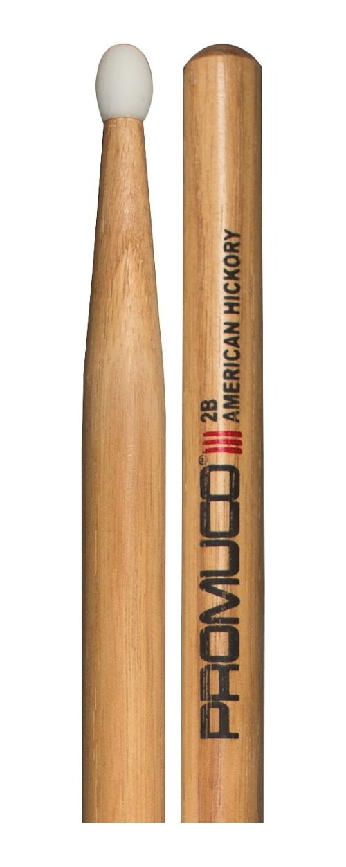 Promuco 1801N2B American Hickory 2B Nylon Tip Drumsticks