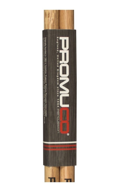 A pair of Promuco 18035A Oak 5A Wood Tip Drumsticks. As a very dense wood, Oak has a natural hardness meaning it is particularly durable. Suited to hard hitters looking for clear drum response and defined cymbal articulation.