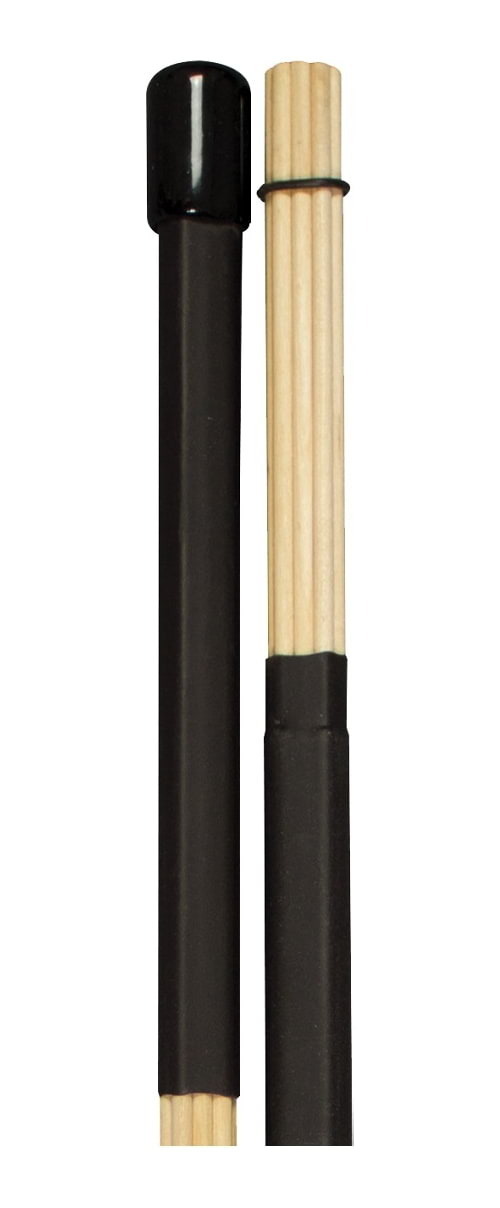 A pair of Promuco 1804 Slim Bamboo Rods. These are drumstick rods are made from Bamboo, ideal for drumming that requires reduced volume. Perfect for cutting through at a lower volume than standard drumsticks but louder than brushes. Smooth comfort grip.