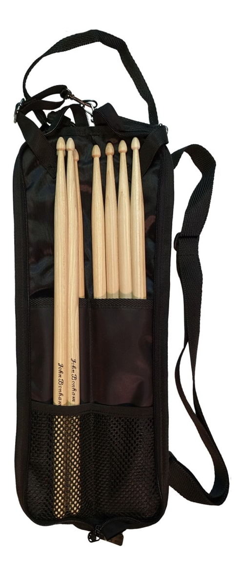 The Promuco PRSBJB John Bonham Compact Drumstick Bag is officially licensed, and is designed to up to eight pairs of assorted sticks. Features two internal compartments and is made from woven nylon. Equipped with a grab handle, strap and two metal clasps