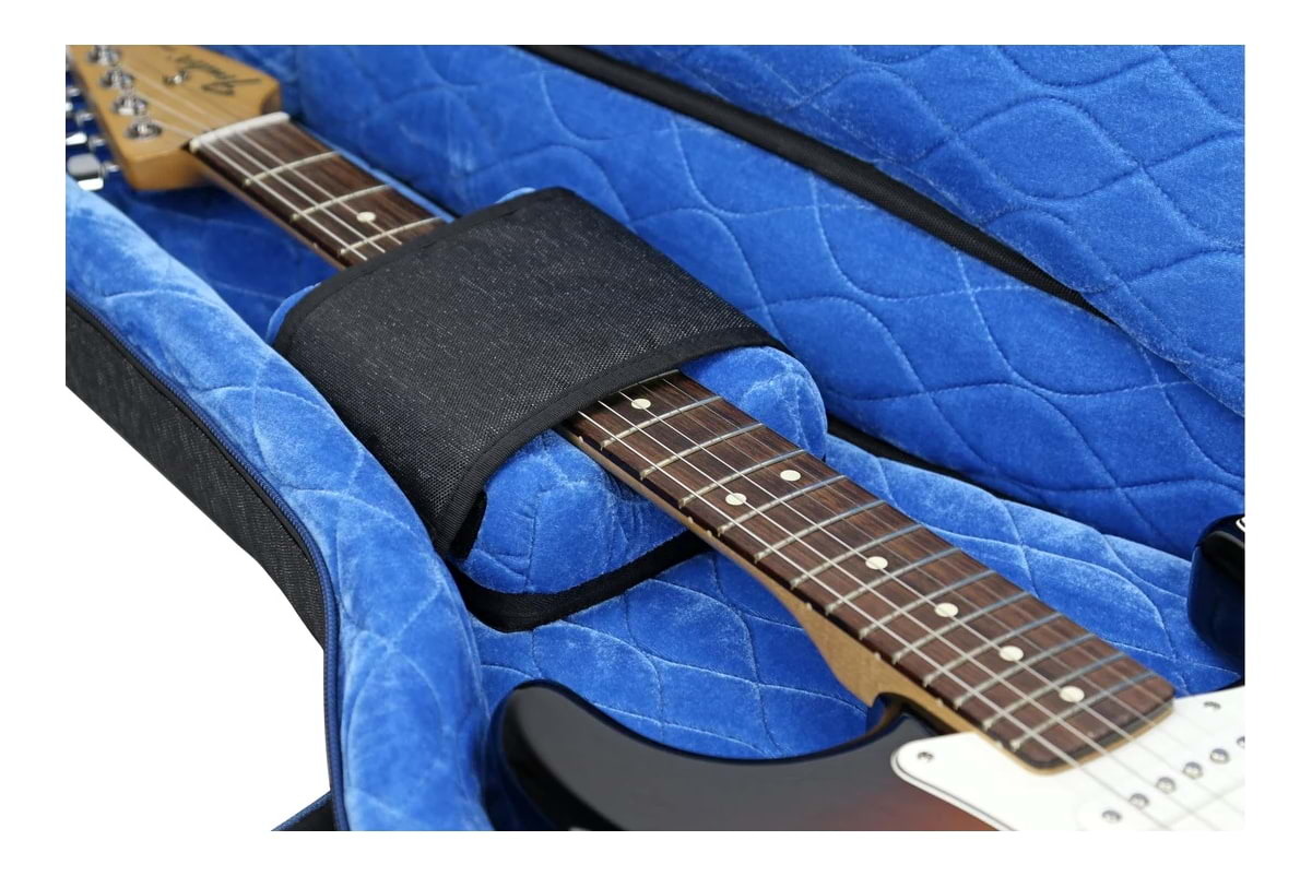 - Reinforced neck brace system locks instrument neck securely in place