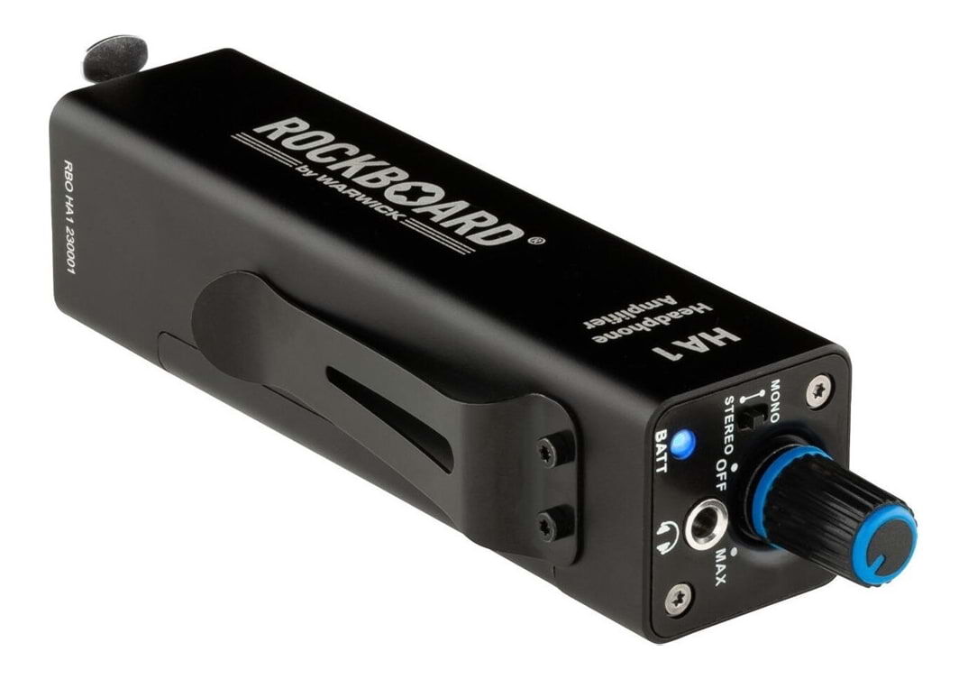 The RockBoard HA 1 In-Ear Monitoring Headphone Amplifier is the ideal companion for singers, keyboardists, drummers, guitarists, bassists and other musicians. It establishes the connection between the monitor signal from the mixer, instrument or amp and your own headphones. The operation is child's play: Simply activate the device with the volume control and set the desired volume for the headphone signal. With the stereo/mono source switch, easily accessible on the device, the RockBoard HA 1 can be adapted to the existing input signal. The extremely compact and lightweight aluminum housing is equipped with a clip for attachment to a belt or waistband.