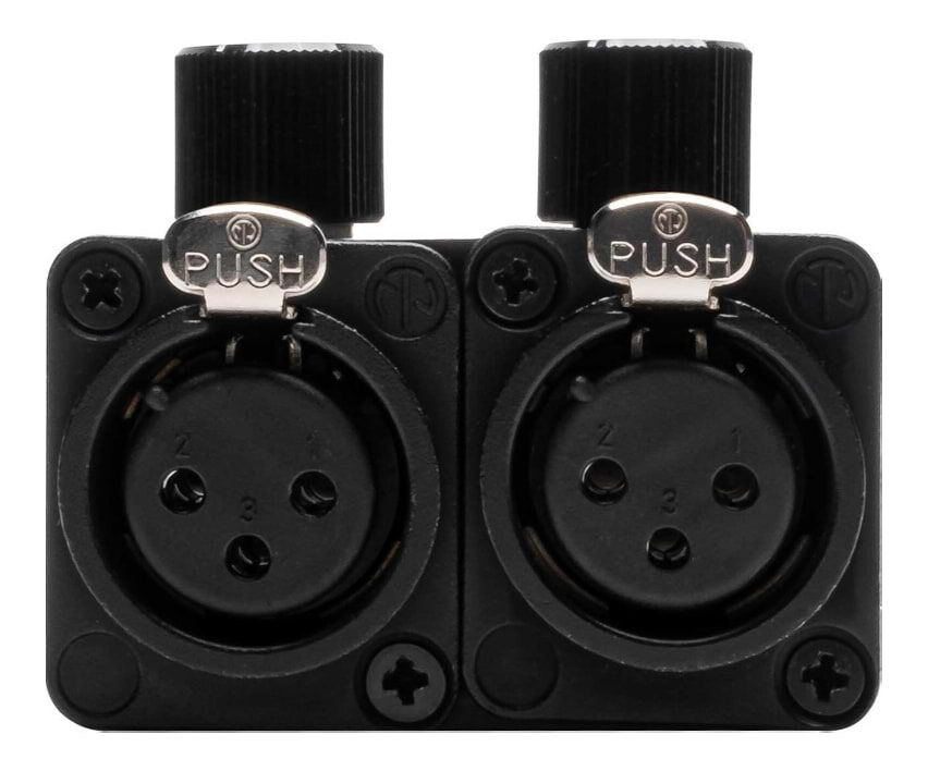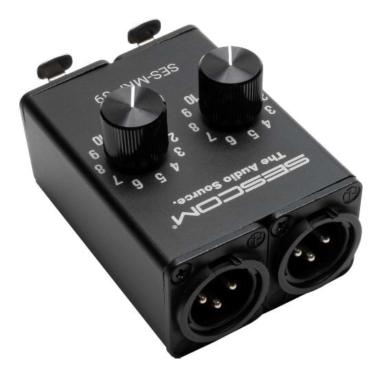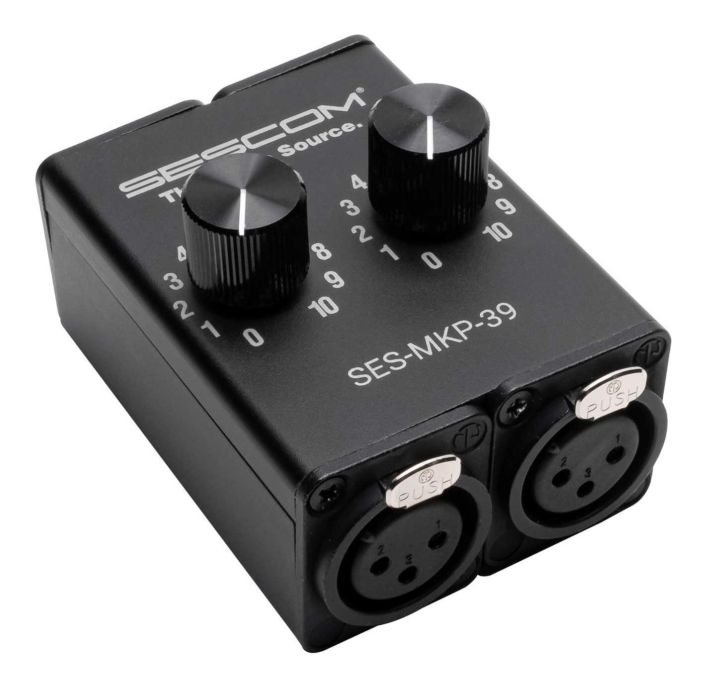 The Sescom SES-MKP-39 is a professional-grade, dual-channel passive audio volume control designed for precise level adjustments in balanced XLR audio systems. It features dual female 3-pin XLR inputs and dual male 3-pin XLR outputs, rugged construction.