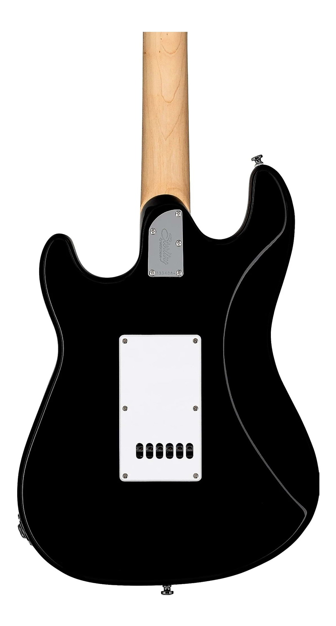 The Cutlass CT20 HSS Electric Guitar from Sterling by Music Man in Black offers incredible value with vintage flair! Poplar body with hard maple fingerboard and neck, house-made HSS pickups, vintage fulcrum tremolo tailpiece, offering excellent tone.