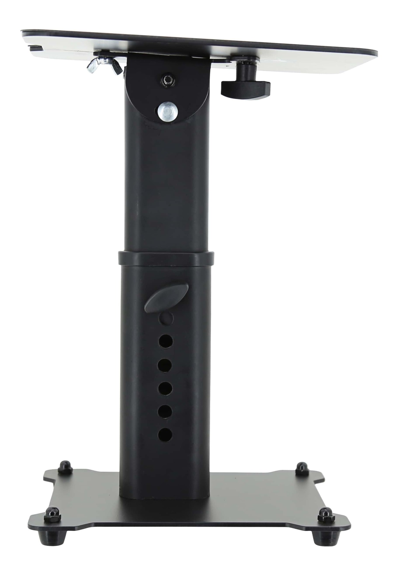Height and angle adjustable, and constructed using heavy duty steel, the SWAMP 5" Desktop Speaker Stands provides excellent stability and effectiveness in positioning your monitors in your studio for creative listening. Rubber feet and no-slip top shelf.