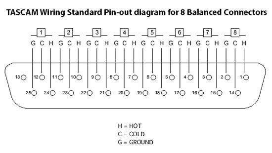These cable looms use the TASCAM wiring standard for DB25 pin-out configuration, commonly used by Avid/Digidesign, Universal Audio, RME and Presonus devices.