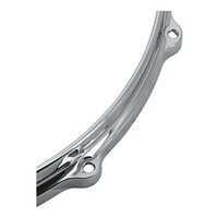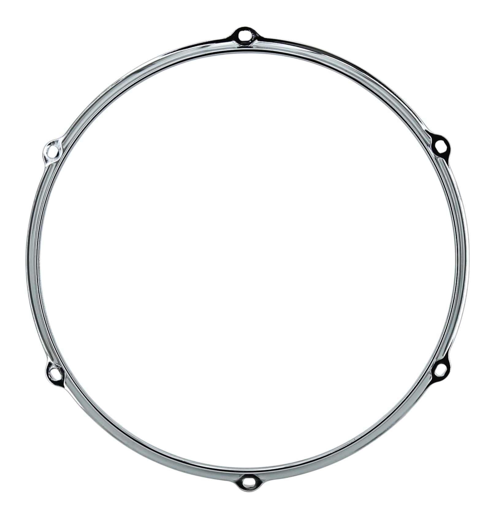 Drum hoops are used to secure and tighten a drum skin over its shell. This 12 inch hoop is designed for the bottom or top side of a 12" tom drum. Using a set of drum lugs, the hoop is pulled over the the skin to stretch it across the shell. Tightening the hoop further using the lugs will give a higher, tighter tone, allowing the drummer to tune as desired. High quality die cast steel, at 3.5mm thickness. The hoop features 6 holes.