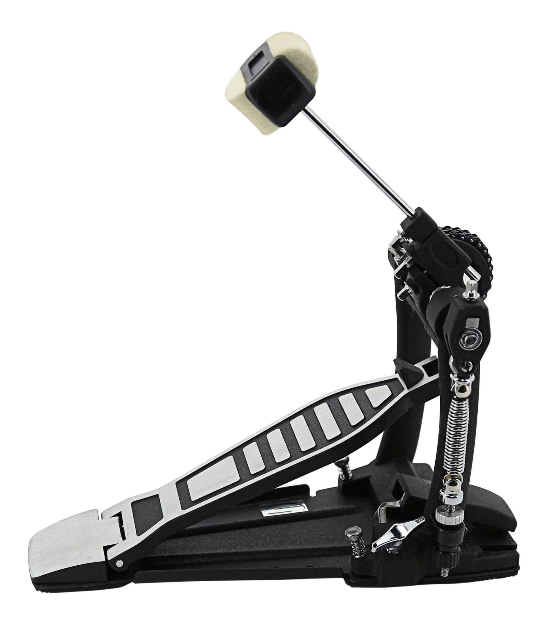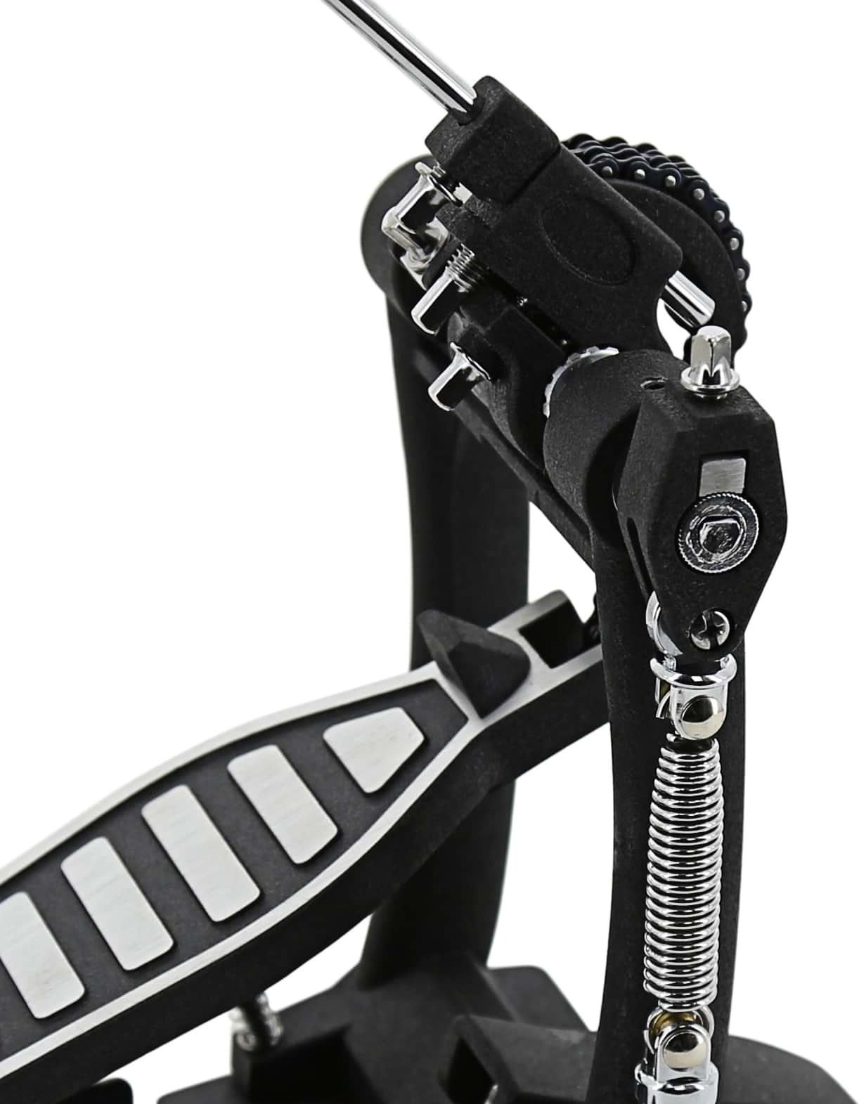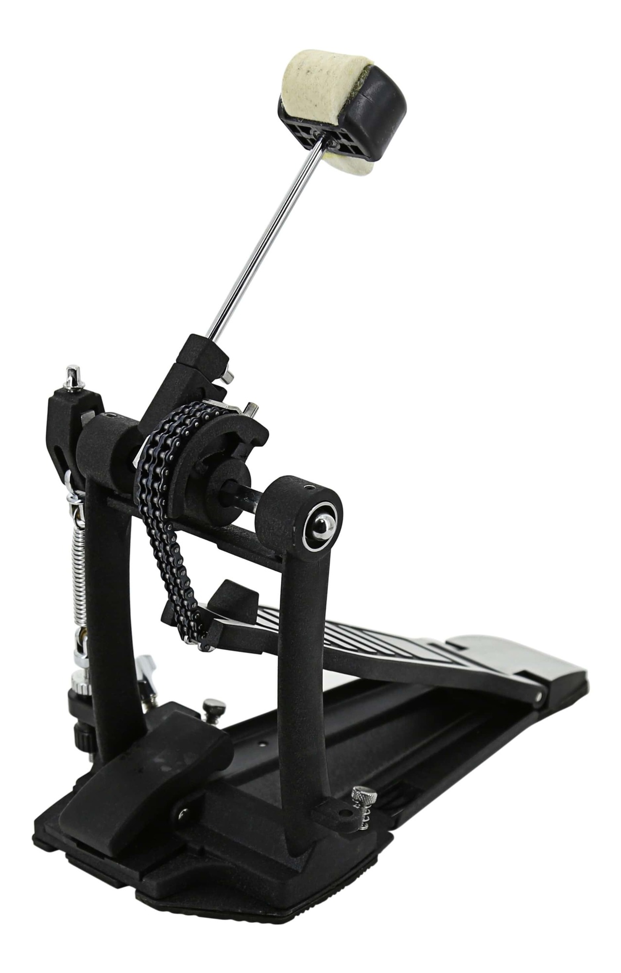 With its solid steel skid-proof stabiliser plate, this kick pedal delivers a strong performance. Featuring a double chain drive, cam rocker, solid metal base plate, side screw hoop locking mechanism, dual beater felt and ABS. Solid and stable, with a smooth action and performance.