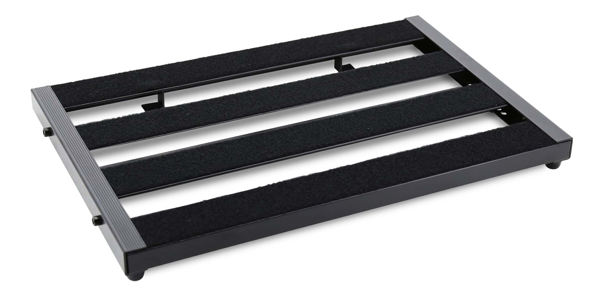 The entire pedal bridge is constructed from lightweight aluminium, minimising the weight of your complete pedal rig and making for easy transportation. This small-medium pedal bridge is great to fit from 8 to 14 pedals (depending on pedal size). The 4 rungs have loop tape already fixed, and the middle two rungs can be adjusted to suit your placement of pedals. There are two removable feet for the back end of the pedal board, to adjust the suitable height required.Comes with everything you need to set up a great looking and impressive pedal board.