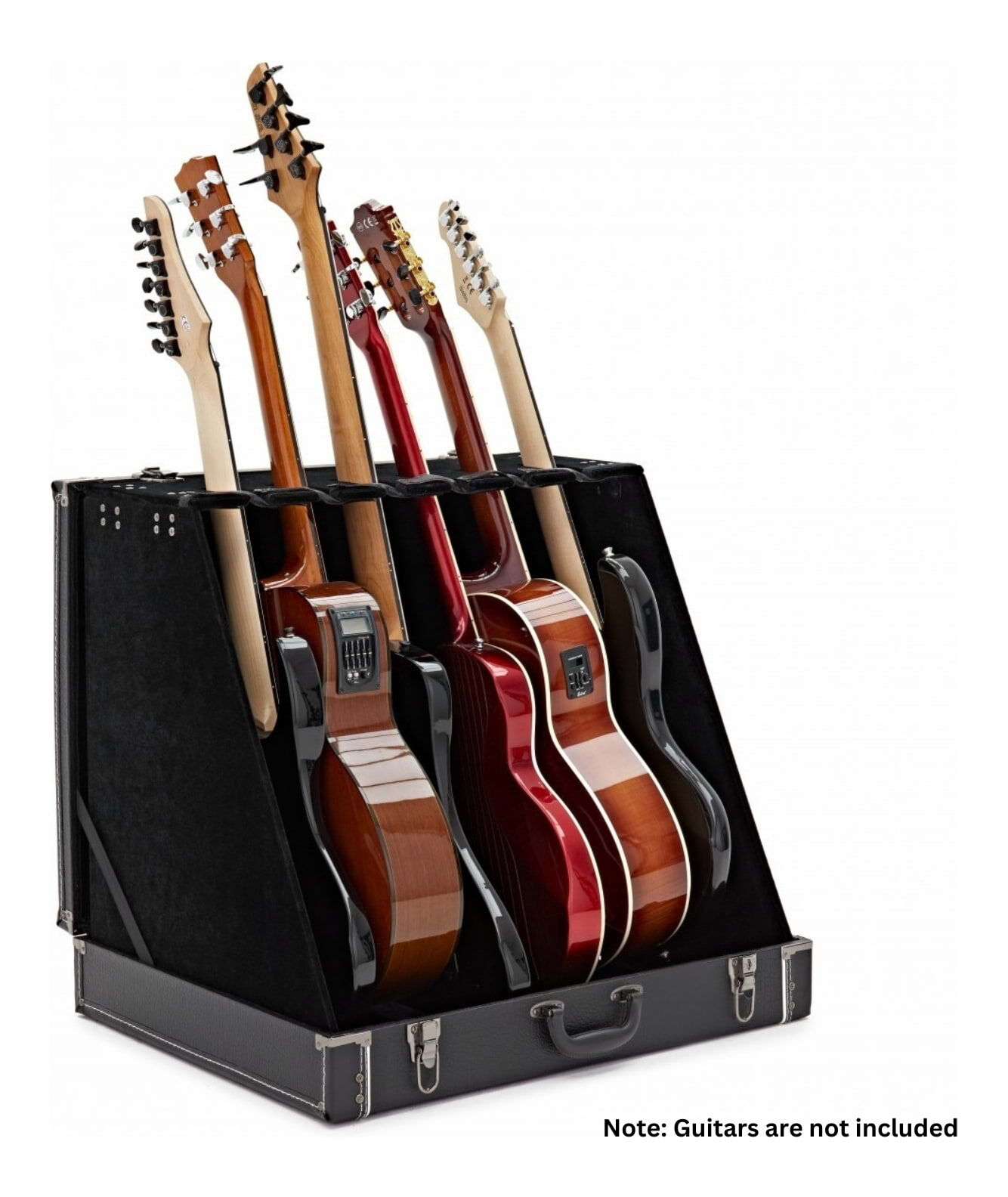 - Fits up to any combo of six acoustic, electric and bass guitars
