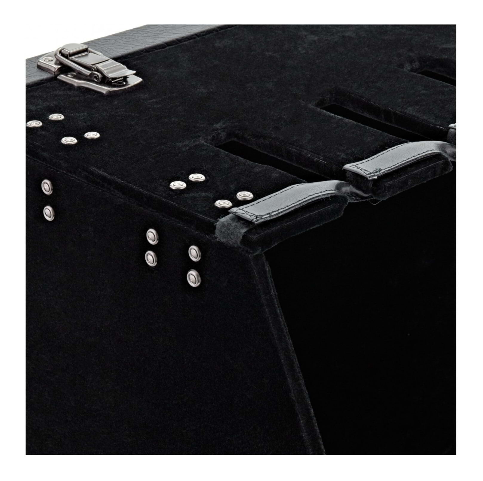 Versatile and handy, SWAMP Portable Guitar Rack Case can hold up to any combination of 6 acoustic, electric and bass guitars, safely and securely. Perfect for touring, home or studio. Collapsible case design and adjustable foam slats for the standing edge
