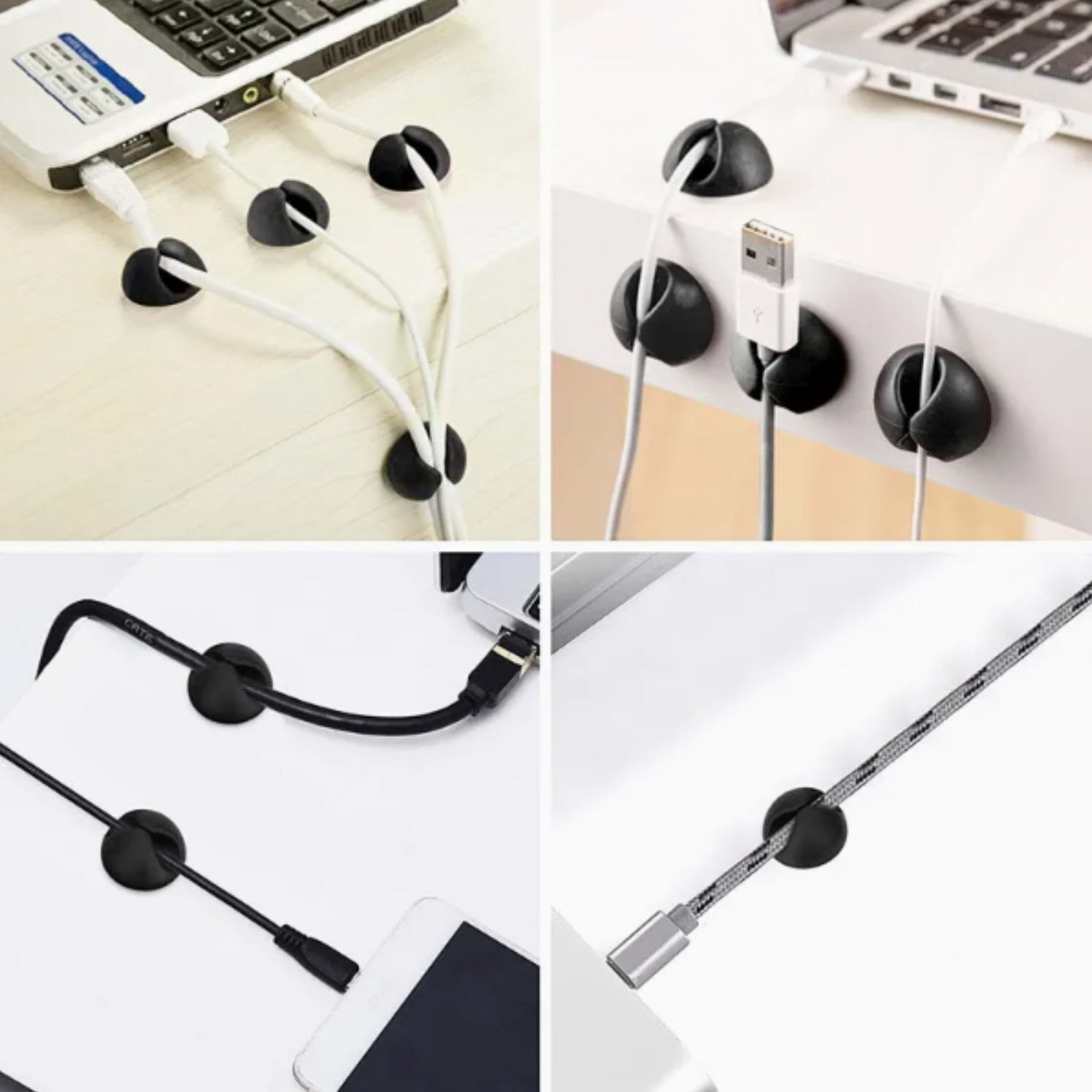 Easy to use with strong self-adhesive, peel and stick on your desk, table, floor, cabinet, wall, furniture or any flat surface at your home, office, car, garage, warehouse, kitchen, studio or any other places you need to put cables.