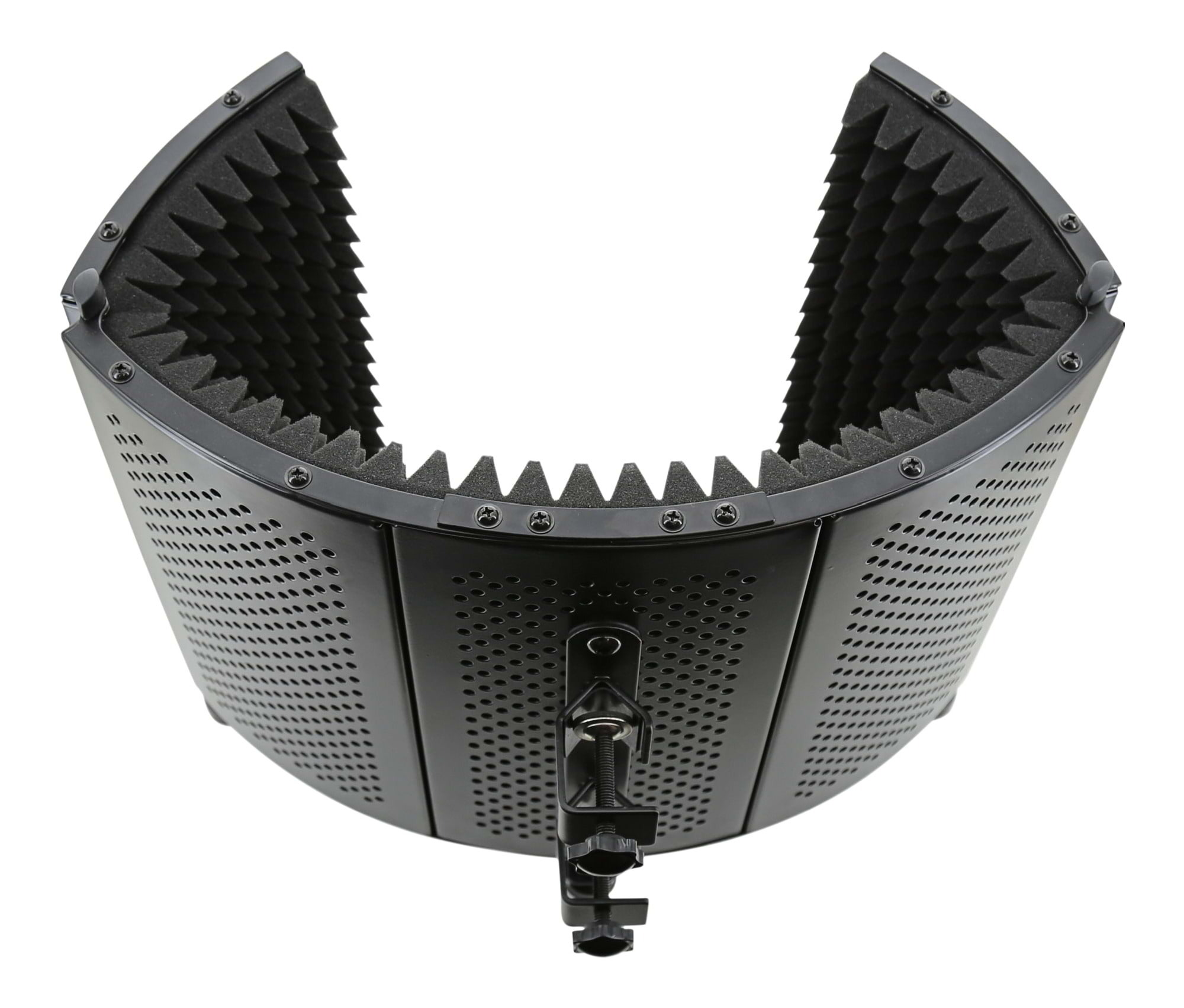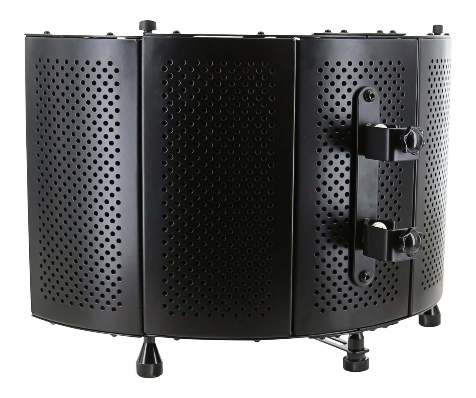 This stylish SWAMP reflection filter provides critical isolation for recording mics, and features sound absorbing walls built from high quality, stylish metal panels with a pyramid foam layering. A reflection filter will help create a "dry" vocal recording when using sensitive condenser microphones in a home studio where sound reflections and room noise are apparent. This a good idea for small rooms with hard surfaces and no acoustic treatment. A dry vocal signal is much easier to work on in post production. It is therefore vital to effectively diffuse acoustic waves surrounding the microphone, to stop them bouncing back toward the microphone, controlling the reflected sound waves that can cause colouration.