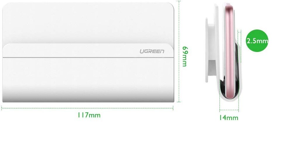 Ugreen 30394 smartphone wall holder can give your phone a safe dock while charging. With a wide range of applications, this wall mount for phone can be used on smooth and even wallpaper, lime wall, tile, stainless steel, glass, wooden and metal surface.