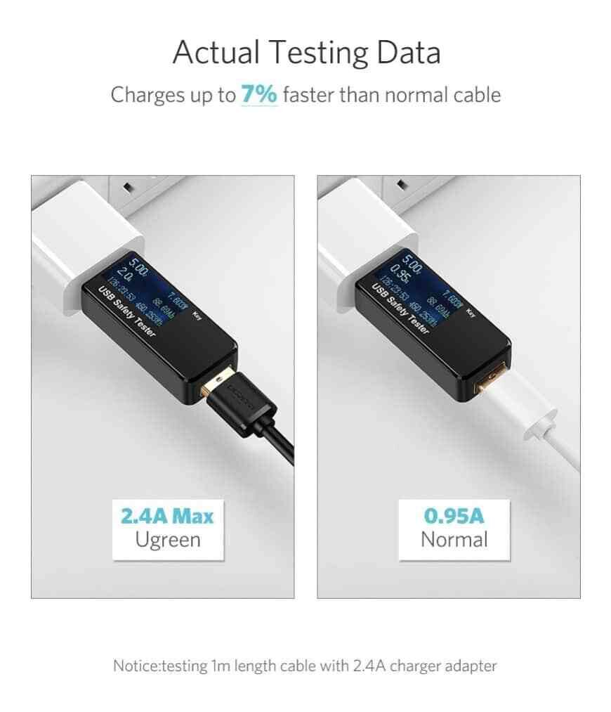 1m Length - The UGREEN US125 USB 2.0 micro USB Male to USB A male cable allows you to connect your mobiles, tablets, cameras, MP4/MP5 etc. to your PC or power adapter for data transfer and charging. It support data transfer speed up to 480Mbps, and up to