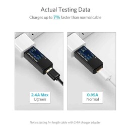 The UGREEN US125 USB 2.0 micro USB Male to USB A male cable allows you to connect your mobiles, tablets, cameras, MP4/MP5 etc. to your PC or power adapter for data transfer and charging. It support data transfer speed up to 480Mbps, and up to 2.4A charge.