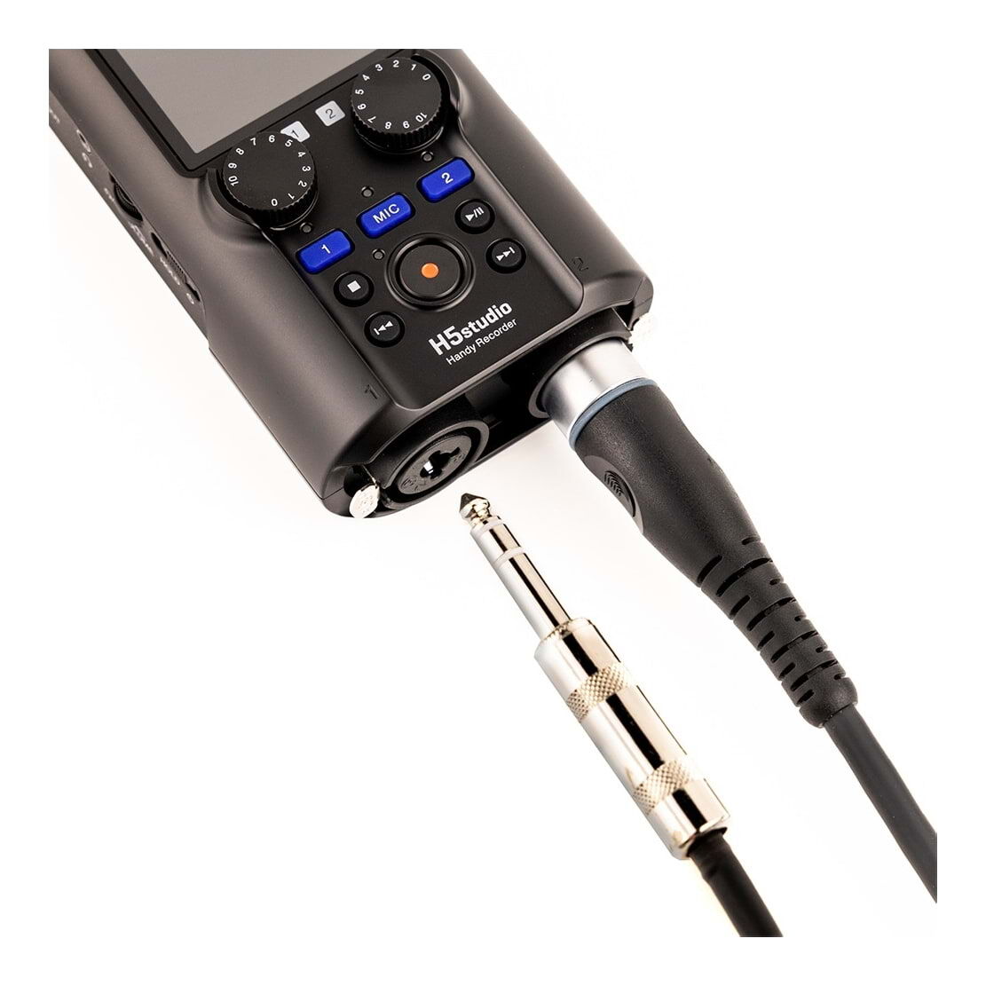 Record with sample rates from 44.1 to 192kHz. The H5 Studio can capture up to 6 tracks* at once - 4 individual tracks plus a stereo mix. Carefully engineered RF shielding keeps interference from smartphones and Wi-Fi routers out of your recordings, anywhere you go. The H5 Studio features “advanced look-ahead” limiters which anticipate potential overloads and prevent distortion before it reaches your track. The two locking XLR/TRS inputs support +48V phantom power and +4dBu line level. There is also a 3.5mm stereo jack with plug-in power.